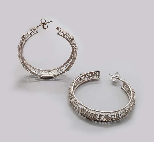 Sterling Silver Hoops Earrings, Random Lines Collection