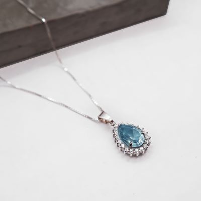 Sterling Silver Pendant with a Synthetic Teardrop Aquamarine and cz